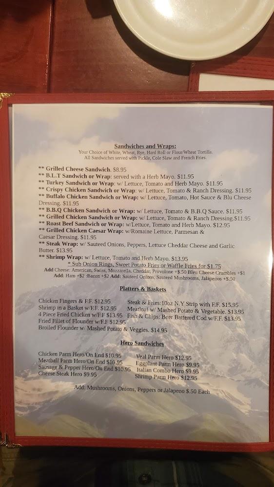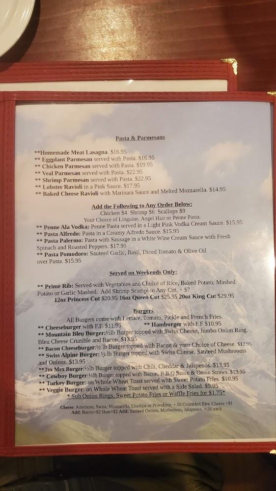 The menu at Mountain View includes a variety of Italian dishes. Popular choices range from lasagna to seafood specialties. The appetizer selection features fun bites perfect for sharing. A variety of pizzas satisfies cravings for classic and creative flavors. Salads offer fresh and healthy choices, too.